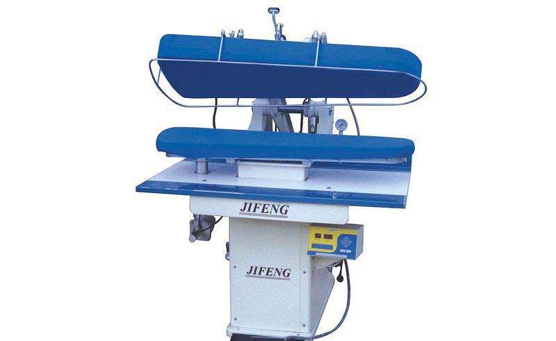 4、工衣夾機:用於純棉、混紡織料的褲縫、衣領等的定型熨燙加工,同時也可以燙平小麵積台布、餐巾、手帕等物品,主要用於水洗後織物的熨燙處理。