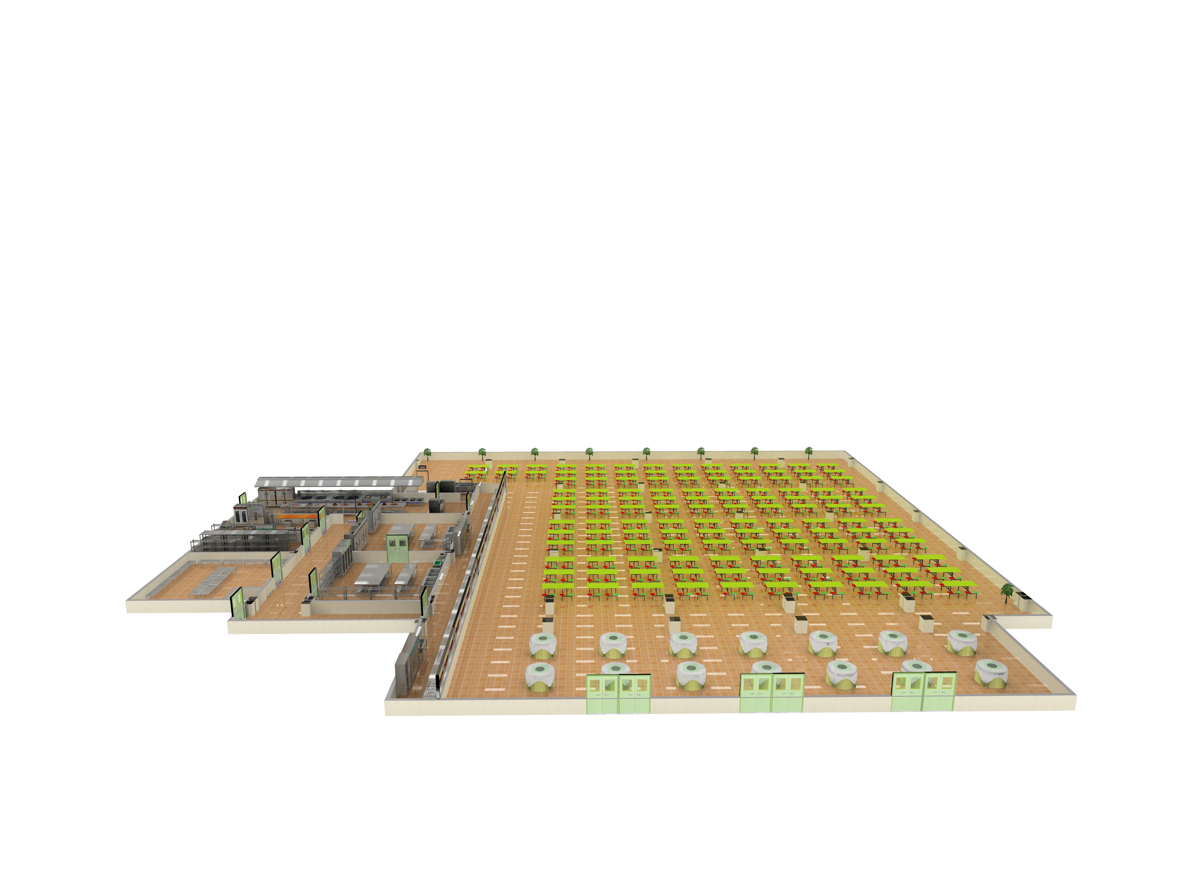 午夜视频免费在线观看的門盡量少設,不設窗戶;午夜视频免费在线观看區域與其他區域在天花板以上高度應完全隔斷,避免排風時,產生短路現象。午夜视频免费在线观看地麵應設明溝,且明溝底有足夠的坡度,最淺處離午夜视频免费在线观看地麵的深度應大於150mm,保證明溝內無積水現象,注意灶台前的明溝不要緊靠灶台,應離開灶台400~500mm左右,讓廚師站在地麵上操作,不要在明溝鋼柵欄上跳迪斯科。午夜视频免费在线观看內排水主管直徑應大於200mm,確保排水暢通。地麵鋪設吸水、防滑小尺寸(50*50)地麵磚,忌用300*300尺寸的,牆麵白瓷磚貼高至天花板。午夜视频免费在线观看與餐廳的通道應設置雙道雙門結構。