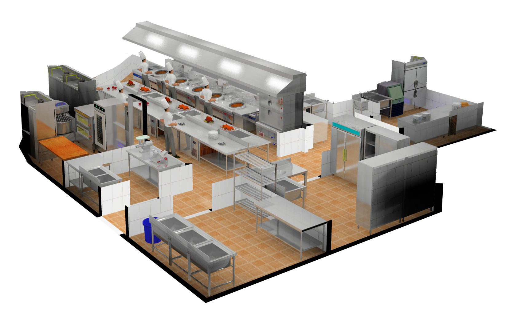 1. 五星級酒店午夜视频免费在线观看設計中空間布局必須合理。酒店午夜视频免费在线观看的主廚區、加工區、清洗區、庫房、備餐區、涼菜區、熱食區都必須規劃合理,布局符合生產流程規劃,是整個午夜视频免费在线观看能夠有序、高效流轉,避免出現路線交叉、重疊,從而影響午夜视频免费在线观看的工作效率。