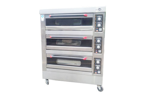 1、三層六盤電烤箱 通過400度溫控設計,升溫更快,大大提供烘焙速度。