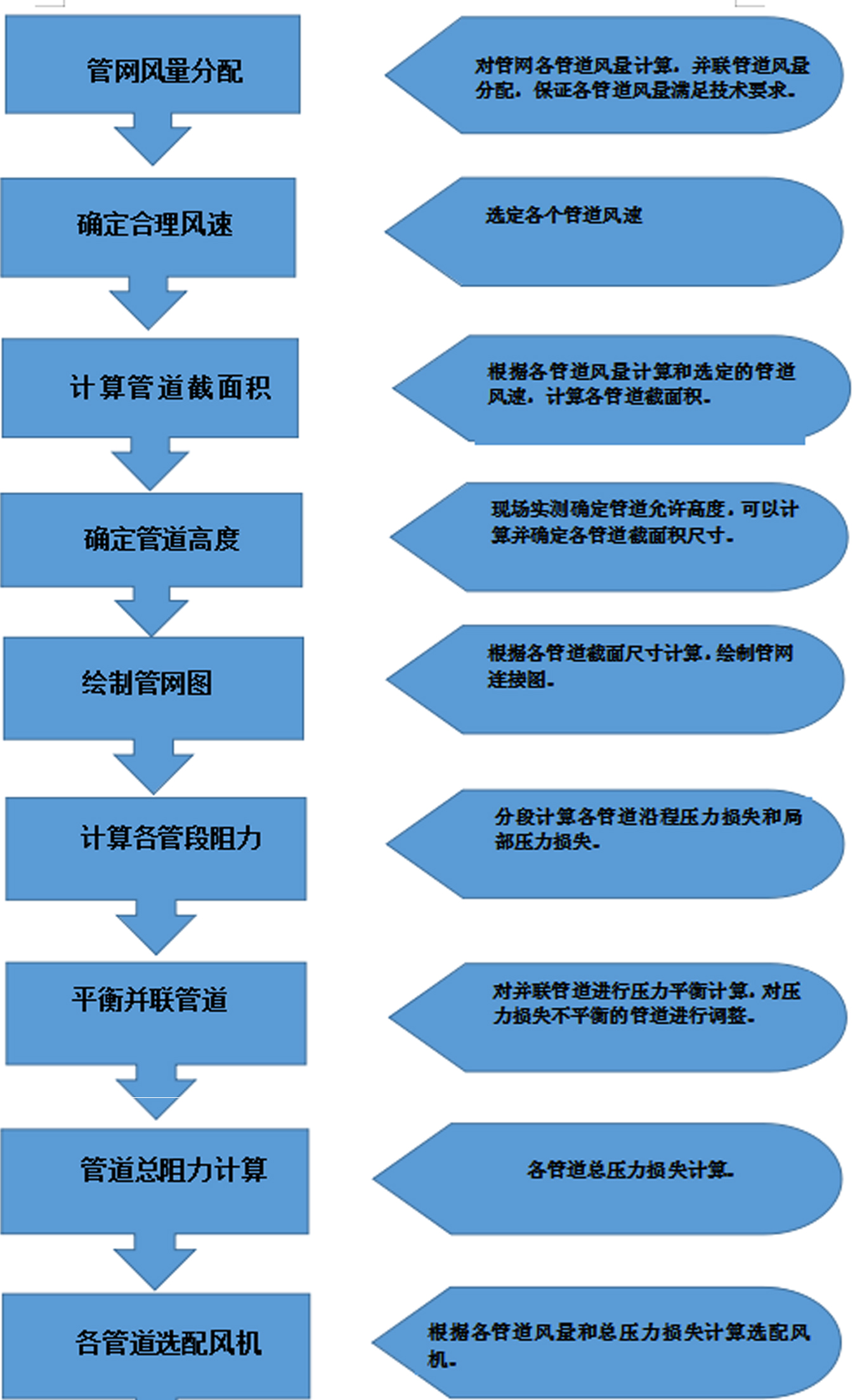 在完成管道排風量計算、管道布設後、開始管道設計計算,可按以下步驟進行。請見下圖。