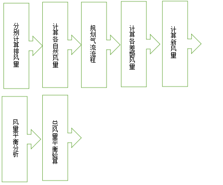 (2)分別計算管廳通道、各工作間通道、對外通道的有效通風麵積和各通道允許的最大自然風量。