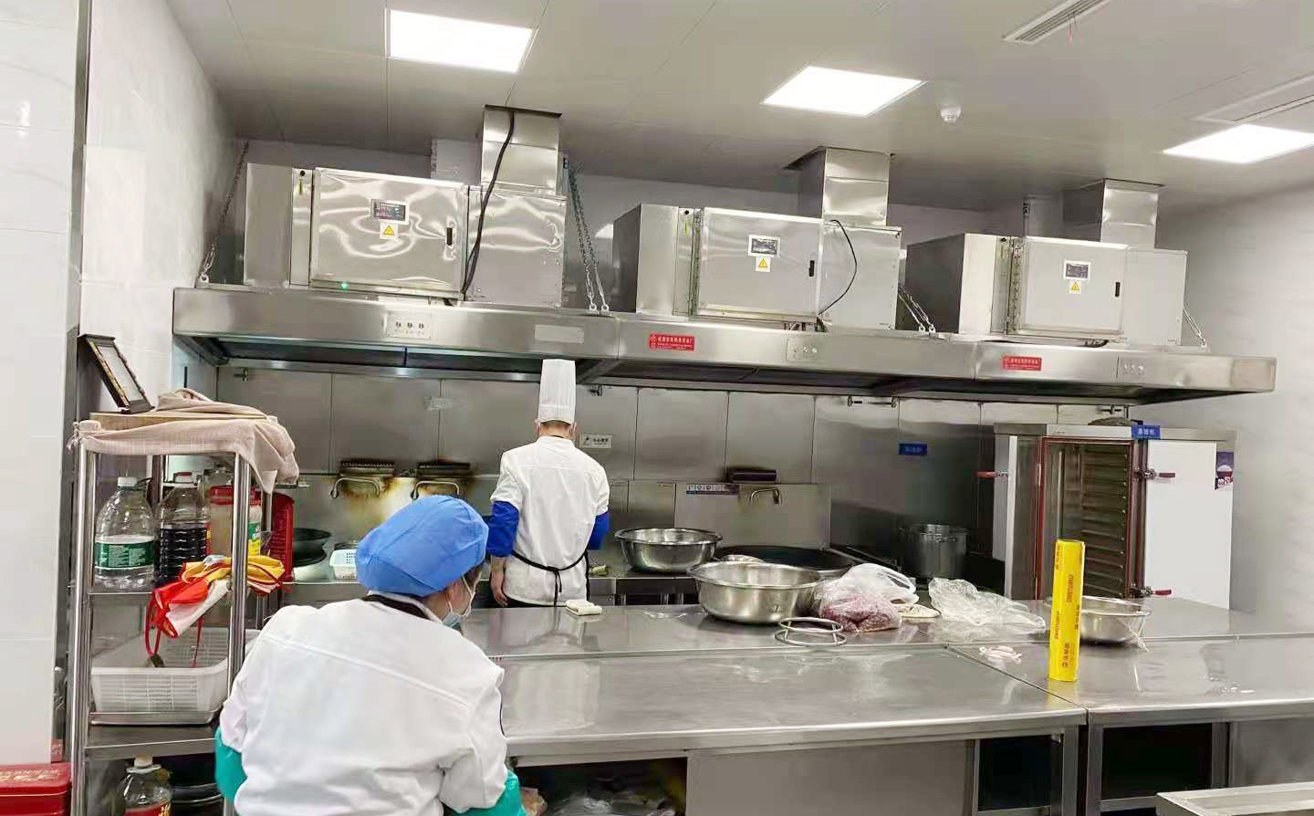 使用設備有:和麵機(和麵)、攪拌機(攪拌麵團)、壓麵機(壓製麵條)、麵粉車、木麵案板台、雙門蒸飯箱(麵點、米飯等主食的蒸製)、雙層電烤箱連醒發箱(麵團醒發和麵食、餅類烤製)、落地式電餅鐺(製作餅類)、四門高身雪櫃(食材暫存)、單開調理櫃(暫存調料)、雙星水池(半成品清洗)、油煙淨化一體機(油煙收集淨化)、隔油池(除油汙)、混水龍頭(可同時出冷熱水)、洗地龍頭等飯堂午夜视频免费在线观看設備。