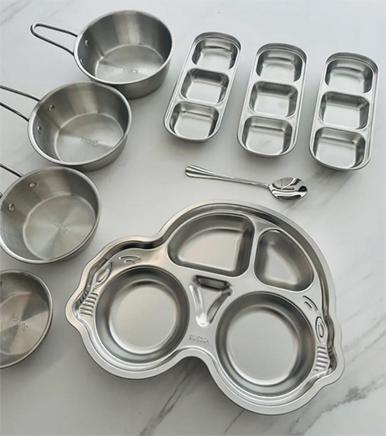 三、對於這種不鏽鋼餐具使用時須注意:不可長時間存放鹽、醬油、醋、菜湯等,因為這些食品中含有很多電解質,長期存放,會與不鏽鋼起電化學反應;切忌用不鏽鋼鍋煎中藥,因中藥含有多種生物堿、有機酸等成分,特別在加熱條件下易與不鏽鋼發生化學反應;切忌用強堿性或強氧化性的化學藥劑如蘇打、漂白粉、次氯酸鈉等進行洗滌。
