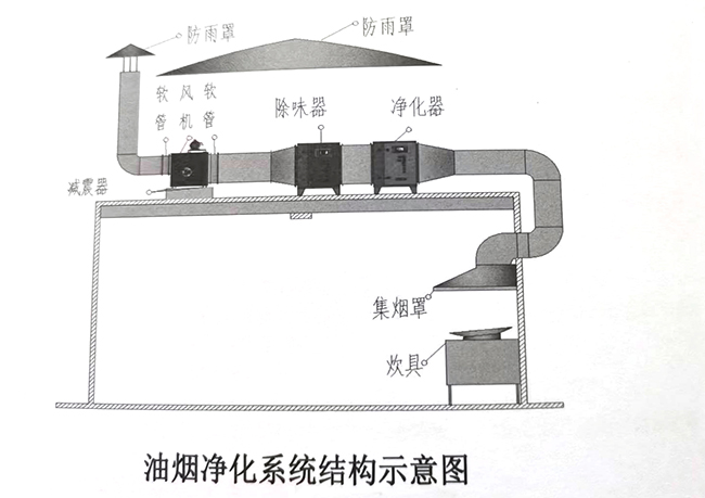 5. 風機的進、出風口必須加軟管連接,風機必須加減震器,防止風機的噪音和震動傳遞到油煙淨化器和管道,影響油煙淨化器淨化效果和造成噪音汙染。