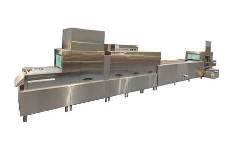 功能特點:餐具由傳送裝置上棘爪步進移動前進,由上.下洗滌臂,噴淋臂,同時衝洗更幹淨,更徹底.完美的洗滌效果.簡易的操作.精巧.但洗滌量大.節省能源的特色,程序化控製,全自動操控,傻瓜式設計,操作簡易,連續洗滌能力更高,雙層臂式結構,保溫更好,節約能源