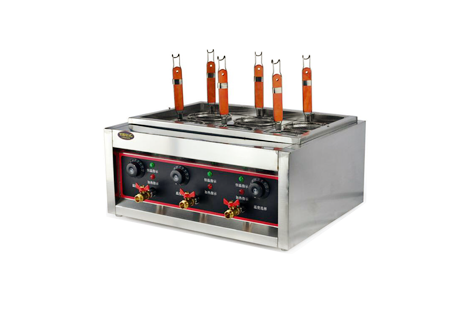 台式多功能煮麵機采用加厚型不鏽鋼,更加堅固耐用:配置多環發熱管升溫更快,更加節約能源,獨立溫控控製,可精準控製每個爐頭溫度;留個湯槽獨立排水設計,可同時滿足更多客戶需要。台式多功能煮麵機適用於:煮麵、煮湯圓、煮麻辣燙、煮餃子等。