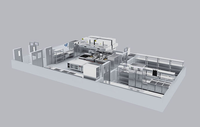 工藝需要專用設備,還需要滿足功能需要的配套設備。在大多情況下,經營者隻會提出所需要的主要設備,如爐具、蒸櫃等。還有一些必需的通用設備不能一一列出來,如水池、冰櫃、調料台、工作台等。這就需要設計人員結合實際情況,把需要的設備設計到位,並向經營者說明。在各功能區域內配齊設備,也就是完成加工工序所需要的冷凍、冷藏、洗、台案、車架、等多種設備。例如,所有加工工作離不開洗、刷、涮和案麵上加工操作,台案、水池就是各工作間要素設備。工作間內要配齊設備,盡量不要跨工作間去完成加工工序。例如,主食加工間到副食加工間去淘米,煮麵條,就跨越了工作間,為實際操作帶來了不便。各種要素設備要盡量齊全,並且根據實際需要確定種類、型號、數量。
