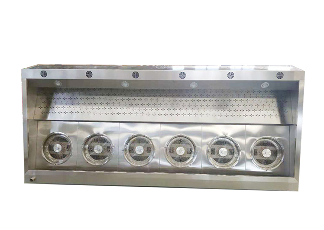 在排煙罩或煙道內加裝高密度霧化器,采用離心霧化器霧化循環水,安裝位置可以靈活選擇;使用循環泵給霧化器供水,用電量減少;不堵塞,維護方便;360度霧化,無霧化死角,霧化密度大大提高,具有明顯的除味效果,淨化率高達85%~92%。水循環過程與運水煙罩方法相同,淨化率、防火降溫的效果優於運水煙罩。高密度水霧油煙淨化器相對穩定可靠,對於有明火或高溫的煙道,例如比薩餅爐、傳統烤鴨爐、炭火爐尤為適用。