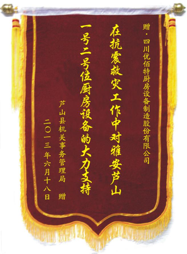 我公司2013年雅安蘆山地震中援建午夜视频免费在线观看設備,獲蘆山縣贈錦旗